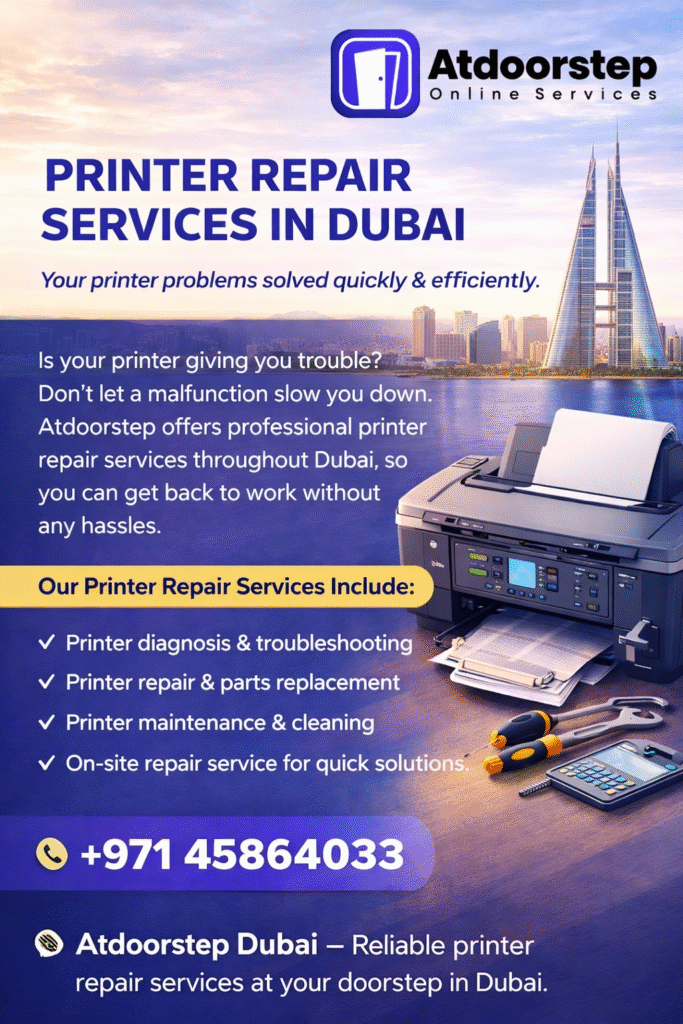 Printers are important equipment required in running the day to day work and productivity and therefore their maintenance is very important.The increasing need of Printer Repair Dubai underscores the need to have effective repair solutions. Most of these needs can be addressed with proficiency by the service providers who have experience, such as Atdoorstep.ae, who have organized and reliable services of repairing printers. For more information:+97145864033
