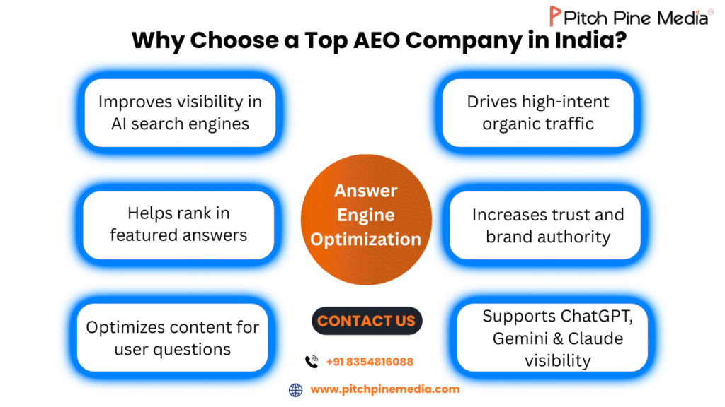 Choose a leading AEO Company in India to improve your visibility in AI-driven search. Get expert Answer Engine Optimization strategies with Pitch Pine Media and grow your brand faster.